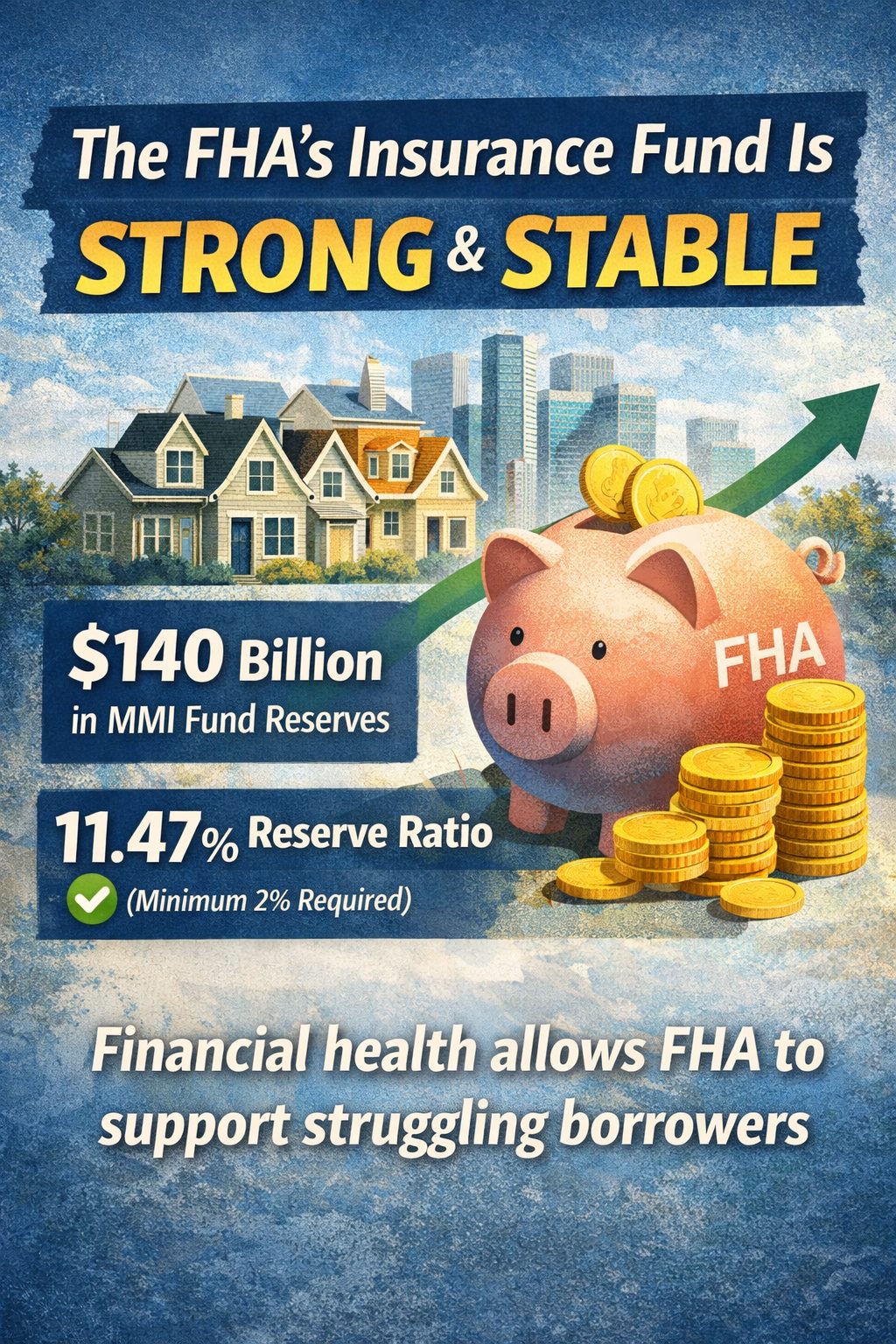 The Federal Housing Administration plays a major role in the housing market. It insures mortgages made to buyers who often have lower down payments. To protect lenders, the FHA uses an insurance pool called the Mutual Mortgage Insurance (MMI) Fund. This fund collects mortgage insurance premiums from borrowers. It then pays lenders if a borrower defaults. By law, the fund must keep reserves equal to at least 2% of its insured loans. Today, that reserve is far higher. According to recent data, the MMI Fund holds roughly $140 billion. Its capital reserve ratio sits at 11.47%. That level is well above the required minimum. It also signals strong financial health.